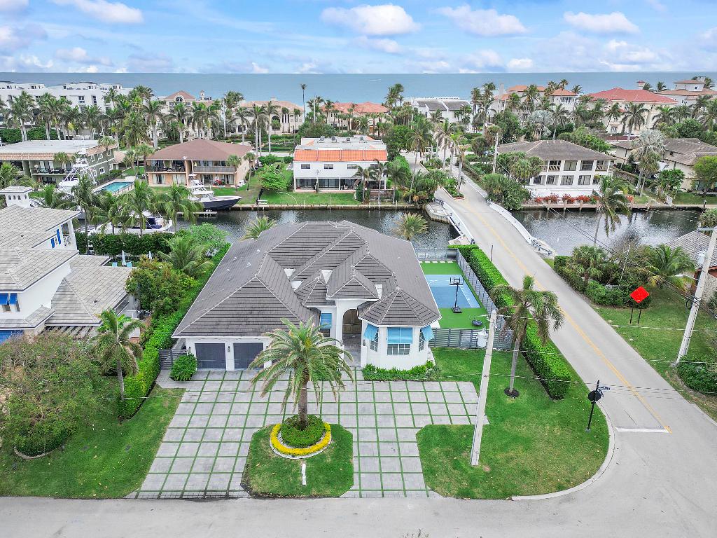 CUSTOM DESIGNER BEACH HOUSE! This unique, finely detailed and elegant home boasts entry doors made of Alder wood, white washed French oak floors, floor to ceiling carpentry and 500 gallon aquarium center piece. Italian tile & doors throughout with drapery, colors and crafted fixtures handpicked just for this home. High impact windows, roof 2019, 3 car garage, Meile appliances and NO EXPENSE SPARED w/ fully equipped control4 AUTOMATION SYSTEM including retracting patio screens. Master quarters include 12ft closet cabinetry, steam shower w/ built-in tv and stunning Italian handmade Swarovski crystal tiles. Home theater with fitted and imported Rolls Royce recliners. 100ft of water frontage w/ ocean access, in ground firepit, basketball court, SW heated pool w sun shelf & hot tub! Slow walker? No sweat, you'll still get to the Bel Lido private beach in less than five minutes. Perfectly located between both Delray and Boca's downtown cores and vibrant public beaches! Private airport BCT 10 min away. Fly out of PBI, FLL and/or MIA (30min-1hr drive) Private schools and A rated public schools nearby. Come live your best life in Highland Beach!